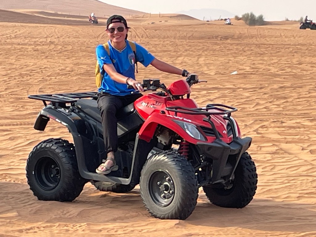 Yesterday was full: walking around Dubai, ATV driving and camel riding in the desert, dune busting in a Toyota Land Cruiser, sand dune surfing, an after dark dinner and a show in the desert, actually there were three shows; a male dancer spinning himself around, a belly dancer who wanted to be anywhere but there, and a fire dancer who bore a striking resemblance to Vanilla Ice! For having only been in Dubai 18 hours, we certainly did a lot.