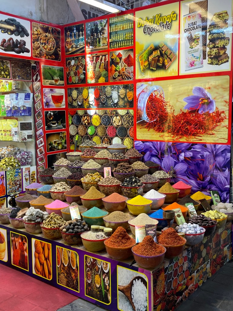 Today we did more exploring, taking in several souks. Souks are traditional marketplaces that offer a unique shopping experience. We wandered the Gold Souk, Wafi and Khan Murjan Souk, the Perfume Souk in Deira, and the Textile Souk. Ellie and Caroline bartered well in the Textile Souk, leaving with camel pants, aka, ultra loose, baggy pants with camels in the fabric. Before heading down the Gold Souk, we all had camel-milk ice cream at Geewin Cafe. Delicious!