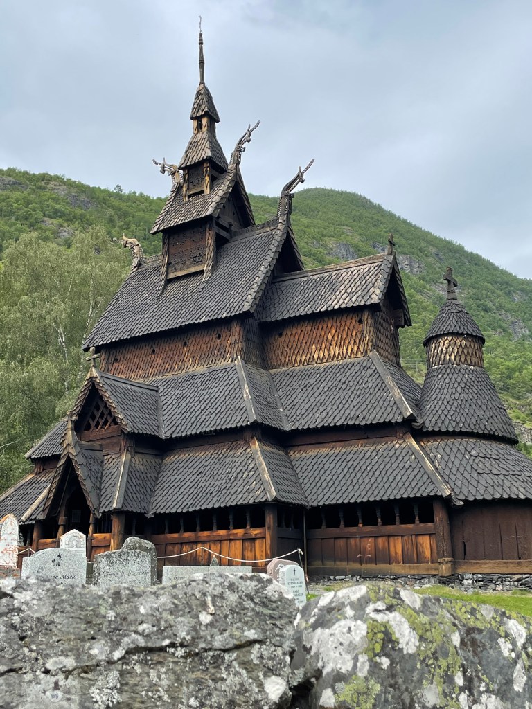 The final stop on today’s road trip was the Borgund Stavkirke. Located in the town of Laerdal, it was constructed in 1200 a.d. It served as a parish church until 1893 when it was turned into a museum. This wasn’t my first time seeing the Borgund Stavkirke. There is a replica at the Scandinavian Heritage Park in Minot, ND, my growing up home. As well, the Borgund Stavkirke is carved into the backrest of the kubbe stool which sits in the entryway of my home. The kubbe stool is a traditional Norwegian living room chair. The one in my home was carved by my Dad.